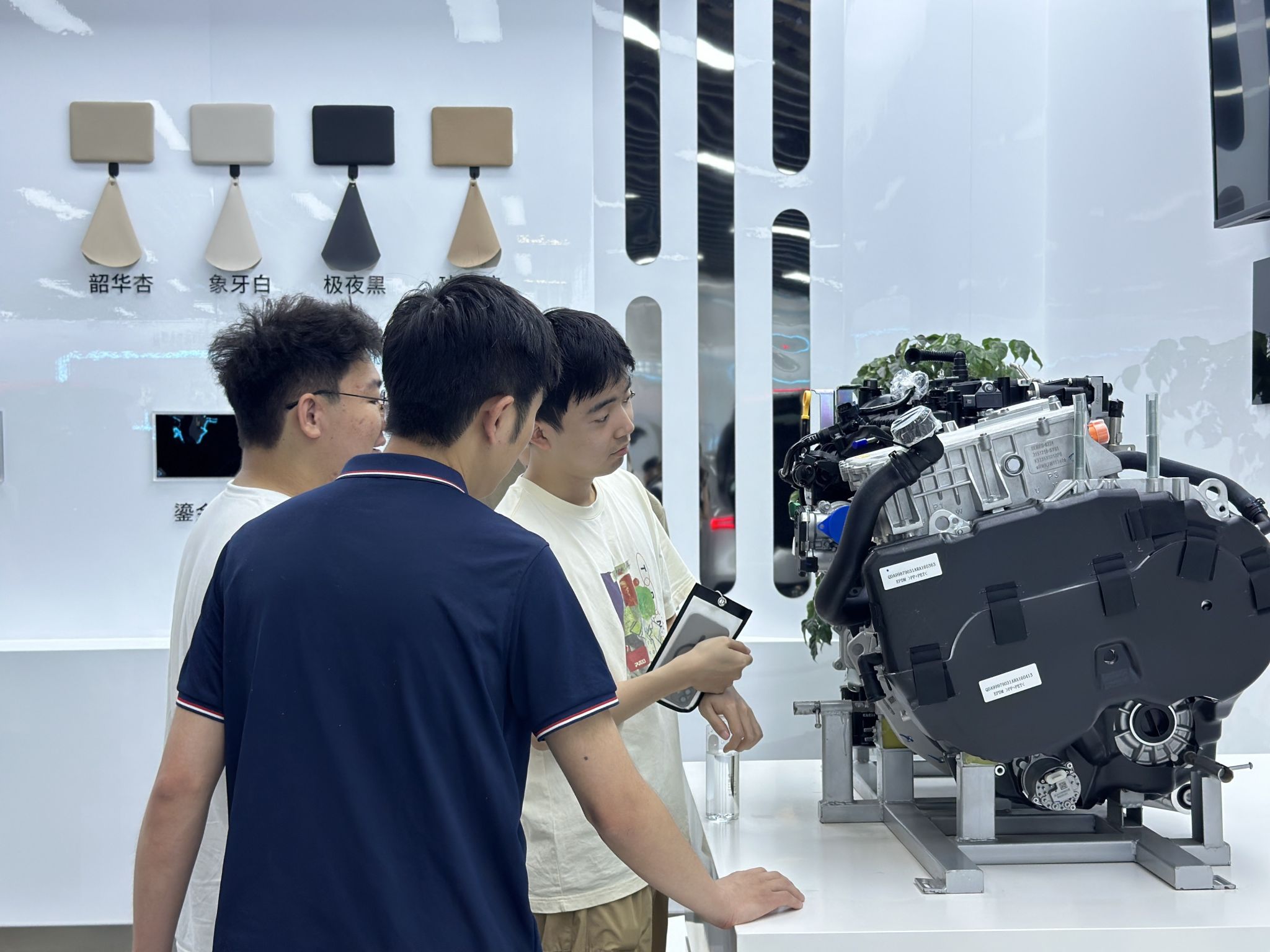 在赛力斯凤凰智慧工厂,学院师生随讲解员一起参观了智慧展厅和总装工厂。智慧展厅的墙面上张贴着核心零部件、零重力座椅、HarmonyOS智能座舱和智能电驱等的示意图,引发了同学们的强烈兴趣。展厅现场还布置了三台赛力斯AITO问界车,同学们积极体验静力智能驾驶。在总装工厂,讲解员就零部件上线、车身焊装、涂装、总装调试和成品下线等一系列流程为同学们进行了深度讲解。其中,大部分工艺通过全自动精益安装,实现了高效、精准、智能的制造,同学们纷纷为智慧工厂点赞。