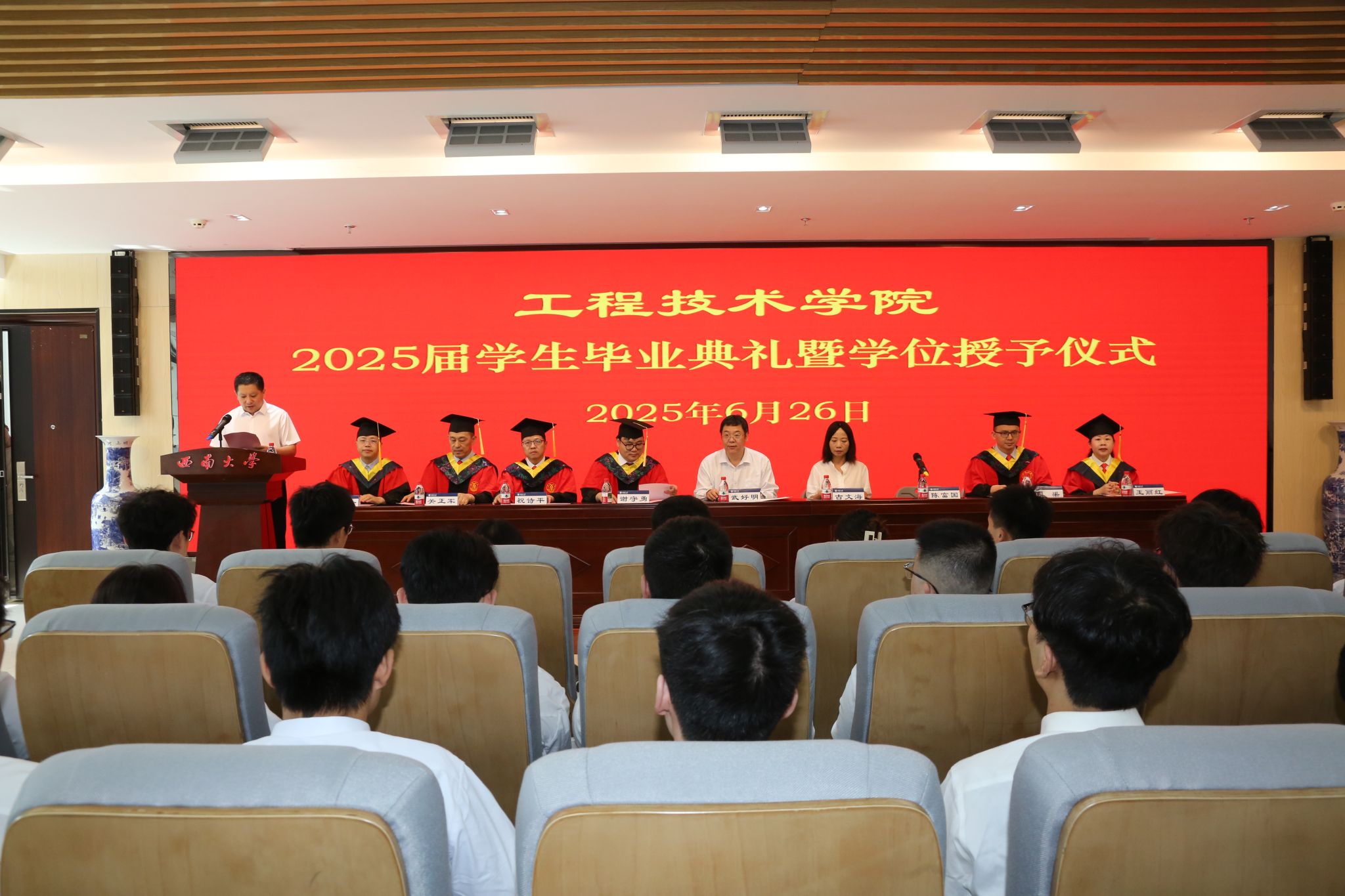 2025届学生毕业典礼暨学位授予仪式在新工科大楼511报告厅隆重举行。学校党委副书记武好明、学院全体党政领导及学术委员会委员出席典礼。学院教师代表、毕业生辅导员和班主任、毕业生亲友代表与全体在校毕业生共同见证了这庄重美好的一刻。典礼由学院党委副书记、纪委书记陈富国主持。